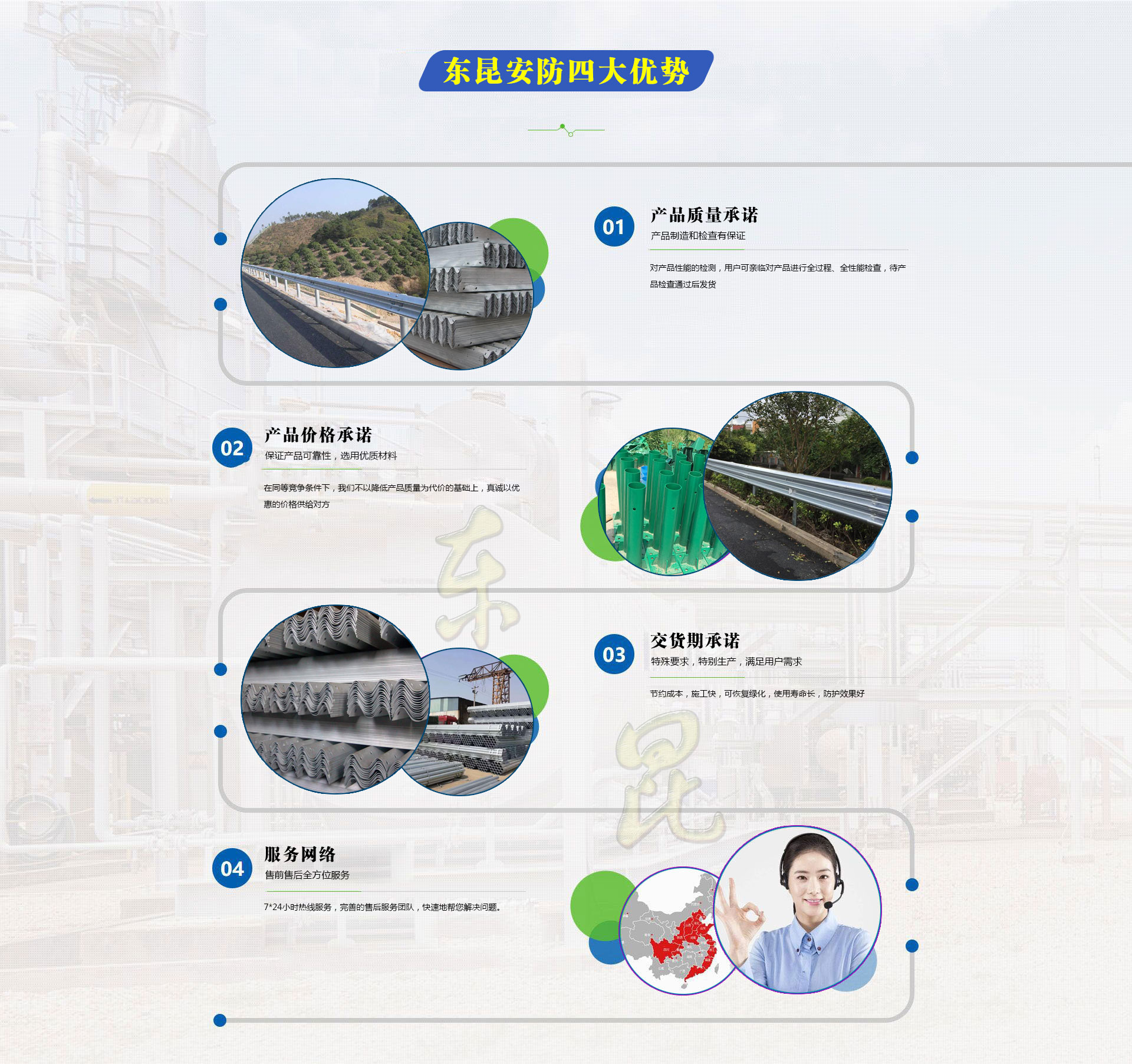 我們的主要業(yè)務(wù)包括:高速公路護(hù)欄板、波形護(hù)欄、橋梁護(hù)欄的生產(chǎn)、銷售與安裝。